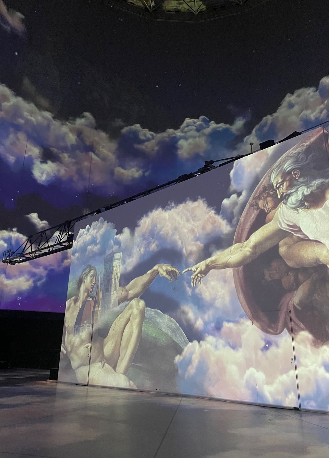 Neben der klassischen Ausstellung erwartet die Besucher auch wieder ein einzigartiges visuelles Erlebnis auf Europas größter 360°-Leinwand. Vincent van Gogh hat die Welt in Farben erklärt. Seine Werke, die über 30 verschiedene Gelbtöne enthalten können, offenbaren seine Sehnsucht und Leidenschaft. Vincent van Goghs Farbwelt ist ideal für eine immersive Erzählung. Die neue Show erweckt Werke wie die „Sternennacht“, „Sonnenblumen“, „Terrasse von Arles“ und viele andere Meisterwerke in monumentalen Projektionen zum Leben und lässt sie bei diesem immersiven Spektakel zu einem Universum intensiver Farben verschmelzen. Die leuchtenden Farben, die bewegenden Bilder und die stimmungsvolle Musik entführen die Zuschauer vollkommen in Van Goghs Welt.